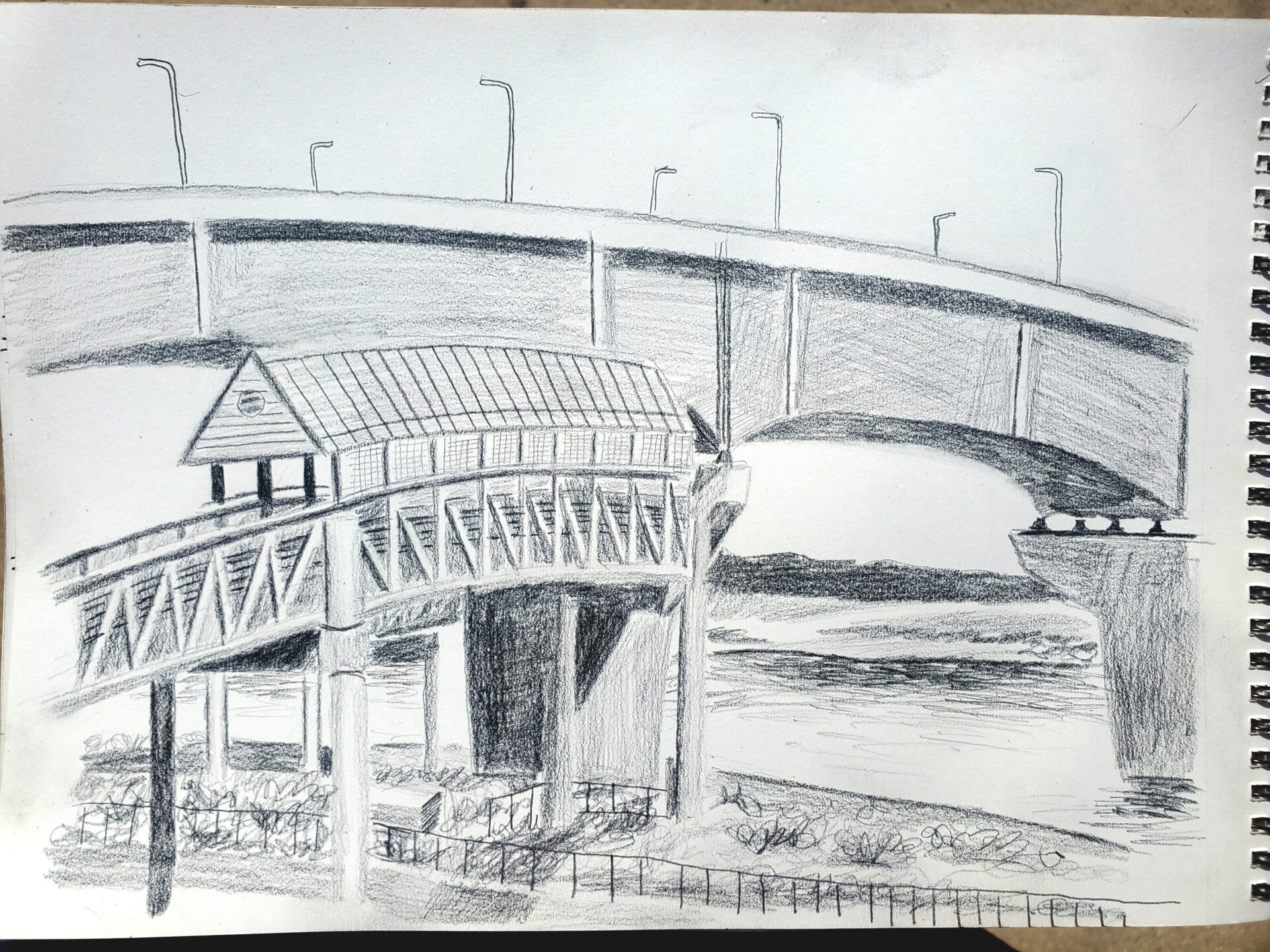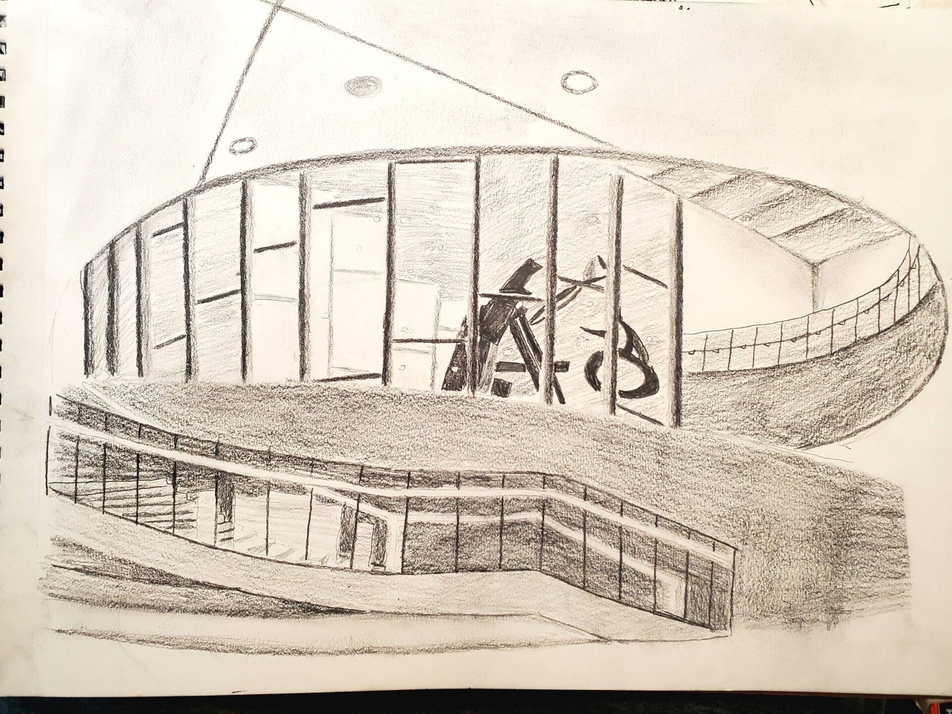 We had to draw a skull from reference and combine it with a body part. I had no ideas other than a zombie guy. Skull turned out good, but I needed more time with the oil pastels.